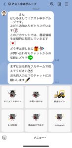 ①友だち登録が完了すると、こんなメッセージが届きます。