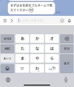 ③キーボードが出現するので、お名前を間違いのないように入力して送信してください。