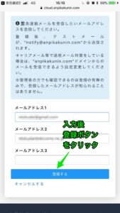 メールアドレスは最大3つまで登録可能です。