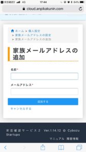 家族の名前とメールアドレスの入力を行って下さい。