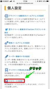 パスワードの変更をクリック
