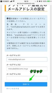 ⑥登録のみクリック→安否確認システムより確認メールが入ります