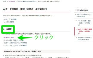 ⑤ドコモメール/spモードメール、迷惑メール対策などの各種設定の利用するをクリック