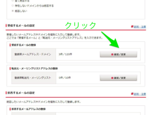 ⑨受信するメールの登録の確認/変更ボタンをクリック