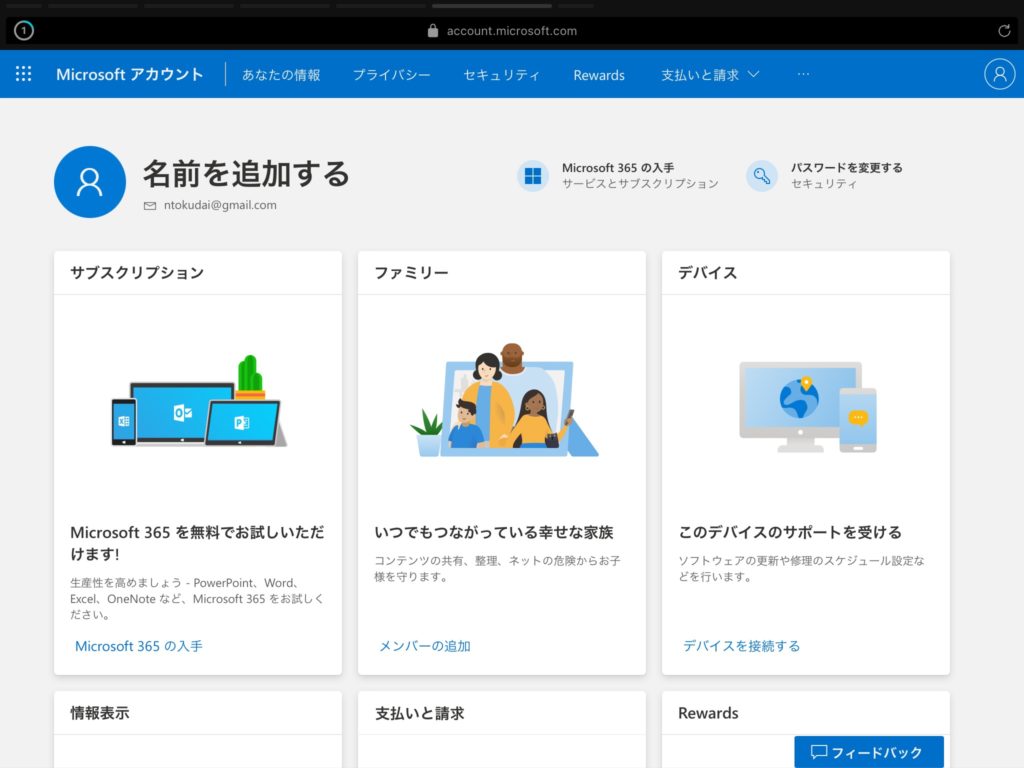 先ほど作成したマイクロソフトアカウントのメールアドレスとパスワードが必要です