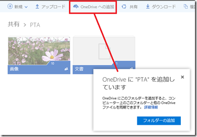 ③画面上部にOneDriveへの追加というのが出てくるのでそれを右クリック