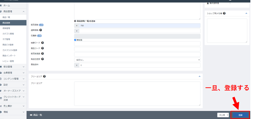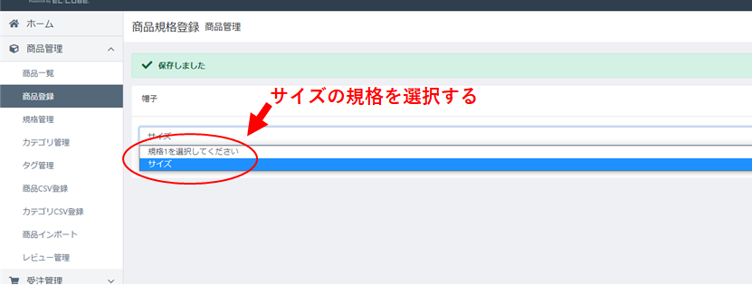 ※一旦登録しないと、各サイズの登録が出来ない仕様になっているため