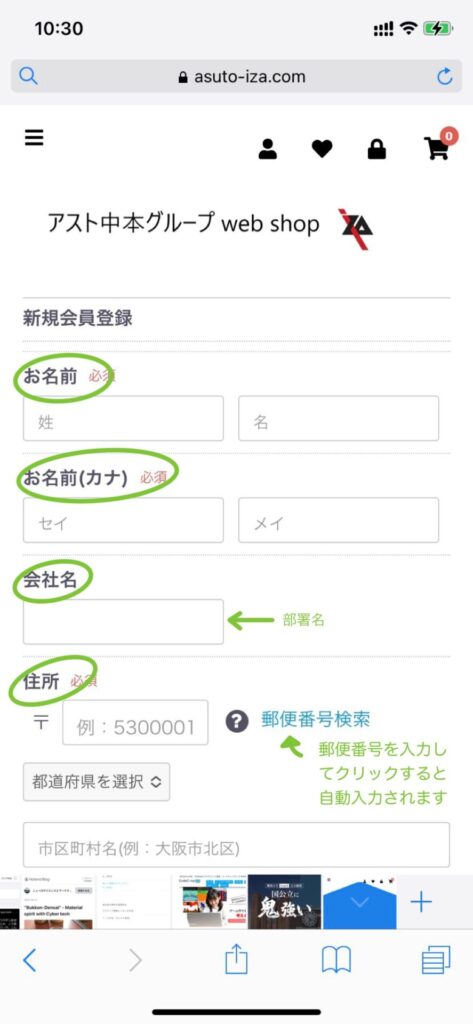郵便番号⇒郵便番号検索をクリックすると都道府県、市区町村まで自動で入力されます