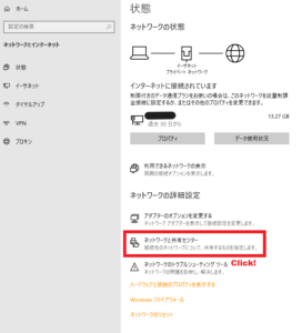 ①「設定」を開き「ネットワークとインターネット」を選択する。